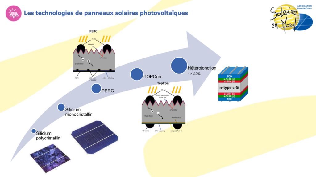 Dans la famille des panneaux en silicium, il existe diverses méthode d’assemblage des cellules, améliorant progressivement les rendements.